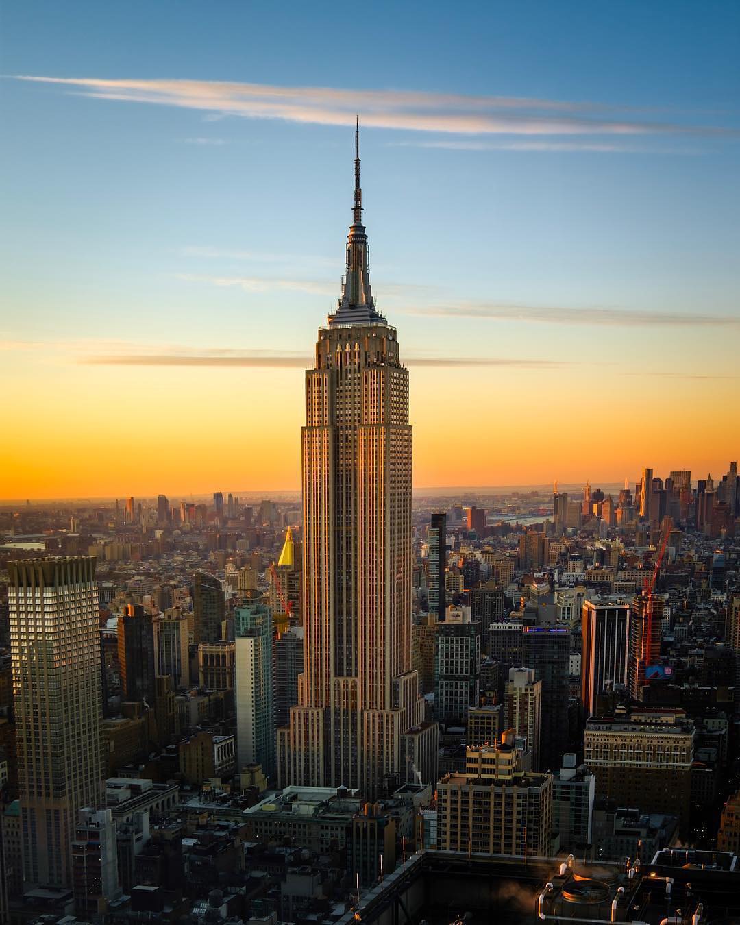 Эмпайр-стейт-билдинг лучше всего просматривается с Вершины Скалы, так как он находится прямо напротив смотровой площадки, обращенной на юг.Строительство Эмпайр-стейт-билдинг началось в 1929 году, и сегодня это одна из самых узнаваемых достопримечательностей Нью-Йорка.