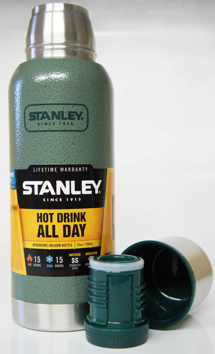 Американская компания-производитель термосов Stanley была основана в 1913 году. Свои первые серийные термосы с колбой из нержавеющей стали компания (сегодня она входит в PMI) стала выпускать с 1915 года. Под этим брендом предлагается большой ассортимент термосов и термопосуды для еды и напитков, делающий путешествие удобным, а отдых — незабываемым. Все термосы для напитков (vacuum bottles) представлены в следующих сериях: Classic (5 моделей), Adventure (4 модели), Mountain (2 модели). Цены на них от $26 до $60. Термосы с широким горлом для еды (food jars & storage) стоят от $25 до $65. Но это уже не просто термосы, а целые системы хранения и приема пищи.